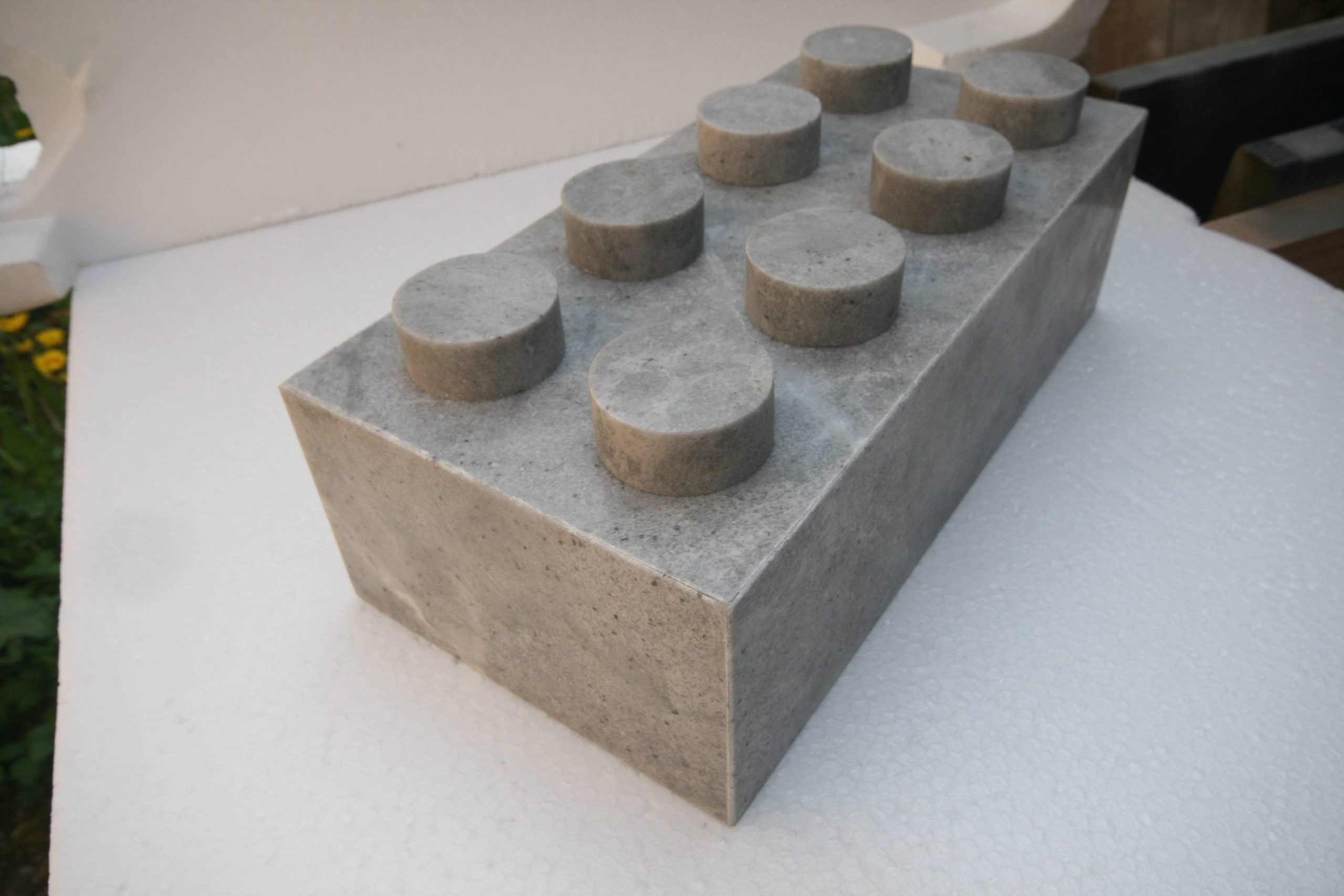 Iconique, régressif et pourquoi pas durable ? Dans cette matière éternelle qu’est le marbre. On s’aperçoit qu’il a la même variété de couleur et même plus que le plastique. L’unique problème c’est qu’on le regarde dans sa singularité. Il n’est plus une brique dans le mur comme disait les Pink Floyds. Il est l’unique, le précieux qui est seul ou peu accompagné. Le marbre rejoint l’enfance, la construction, l’assemblage et l’élévation. Le Lego, cette brique c’est un peu tout cela. Et lui donner une dimension d’adulte en l’agrandissant et le faisant en matière noble. C’est le matériau de la vraie construction. On change d’échelle et de matière et on change de temps. Premier choix, premier et ultime.