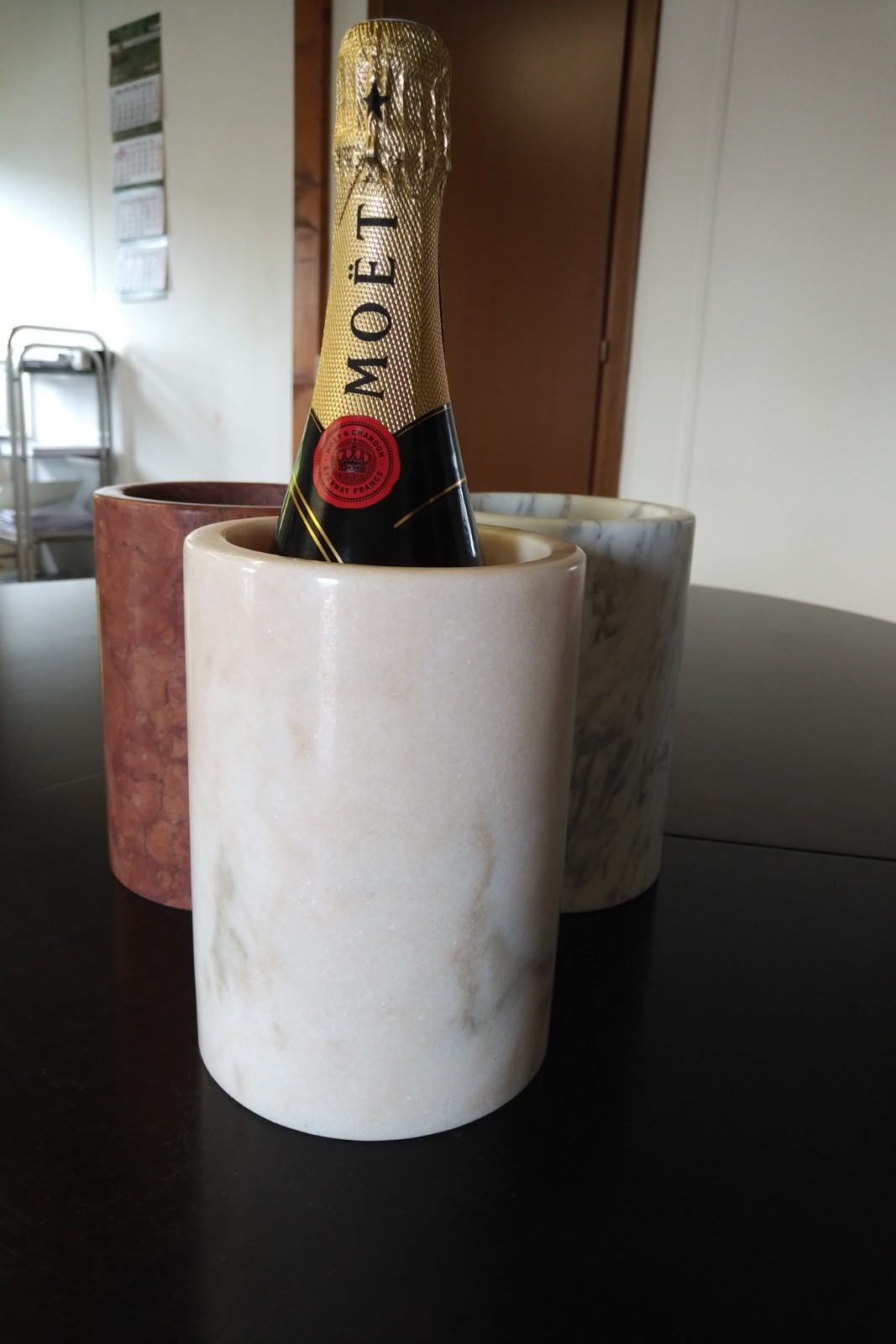 Nous développons depuis quelques temps des objets de décoration en Marbre. Le rafraîchisseur de champagne et de vin est MADE IN ITALY (avec un drapeau sans contour) est une nouvelle création.
